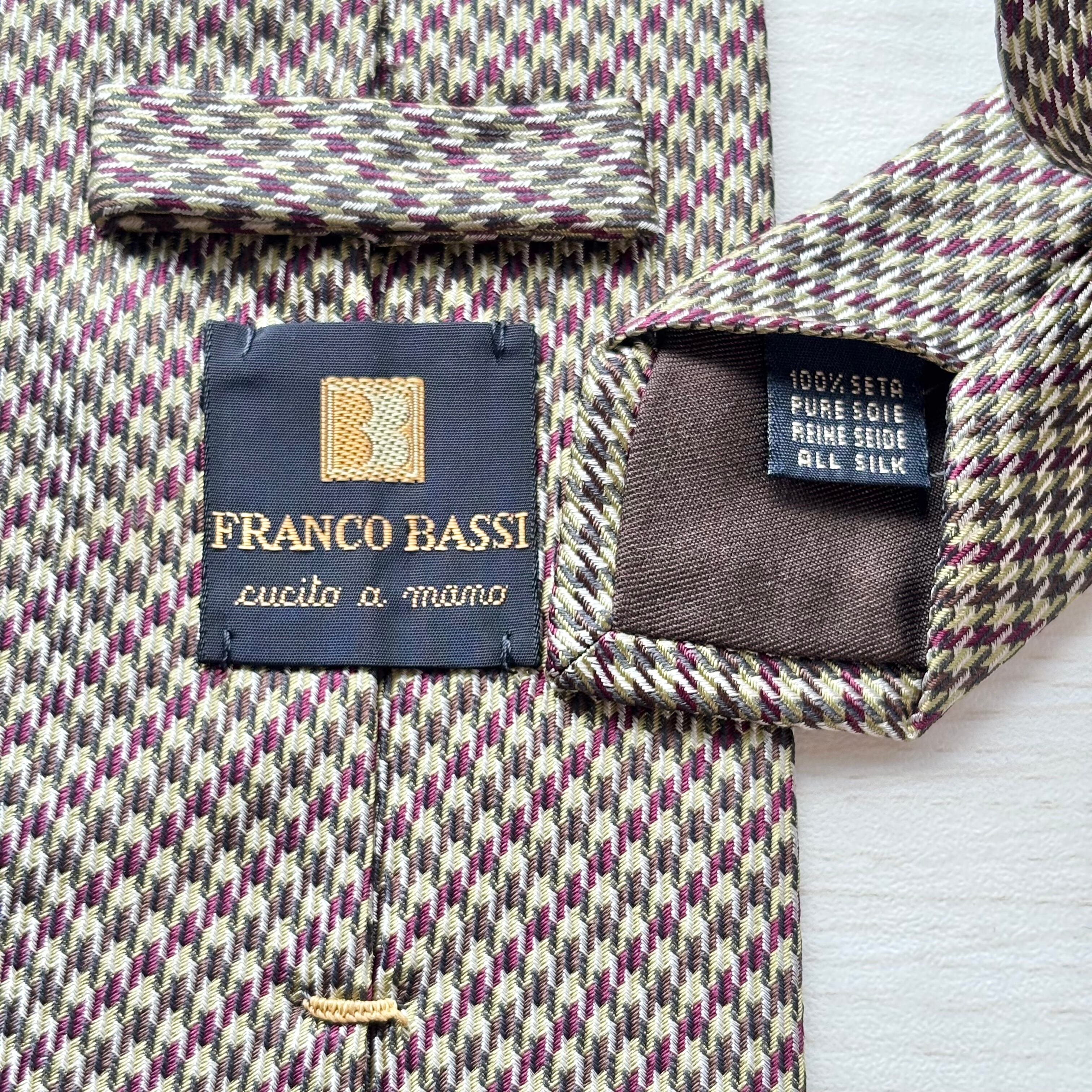 【used】FRANCO BASSI フランコバッシ 極美品 ネクタイ 千鳥格子柄 ハウンドトゥース パープル グリーン メンズ