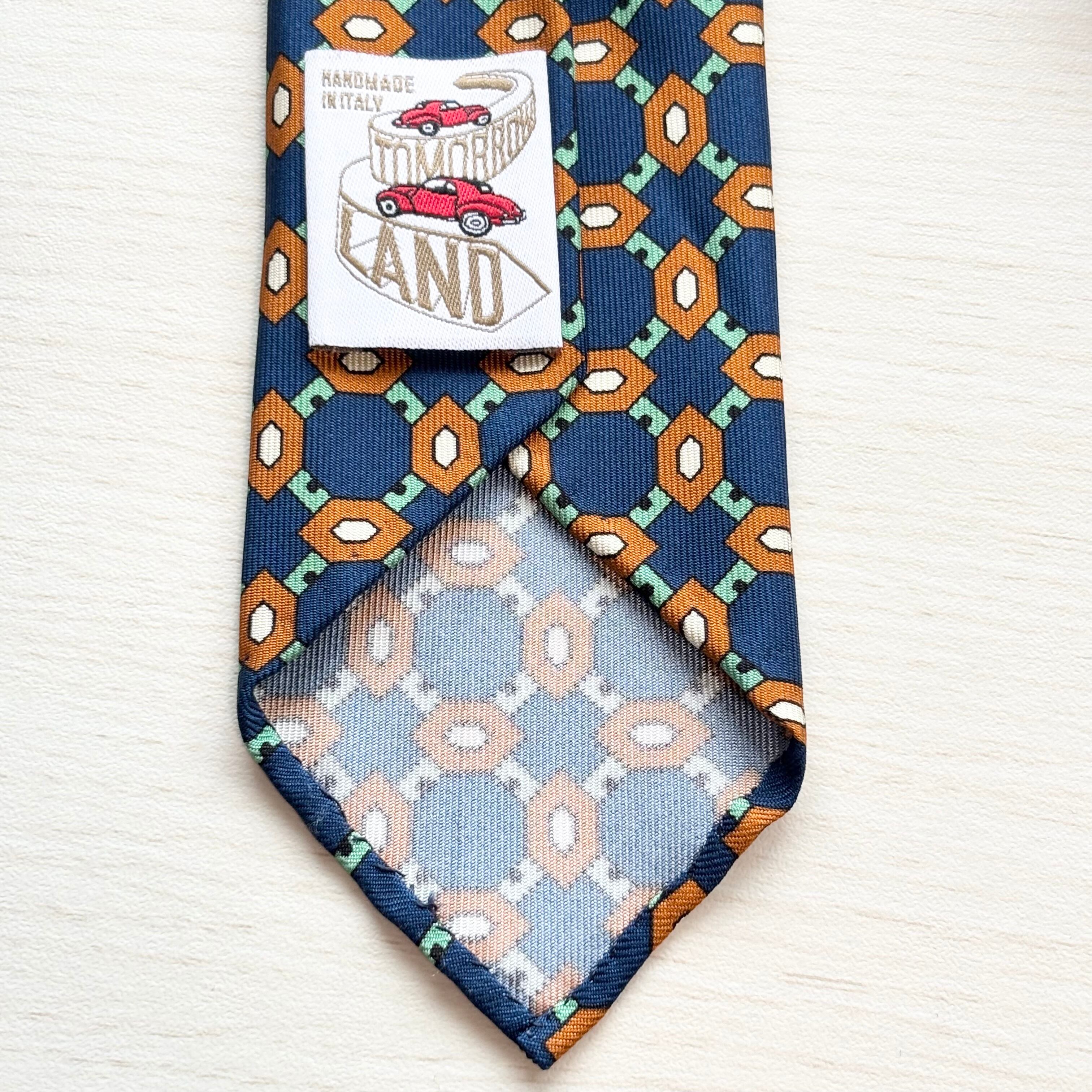 【used】TOMORROWLAND トゥモローランド セブンフォールド ネクタイ マルチカラー 車柄 シルク アットヴァンヌッチ