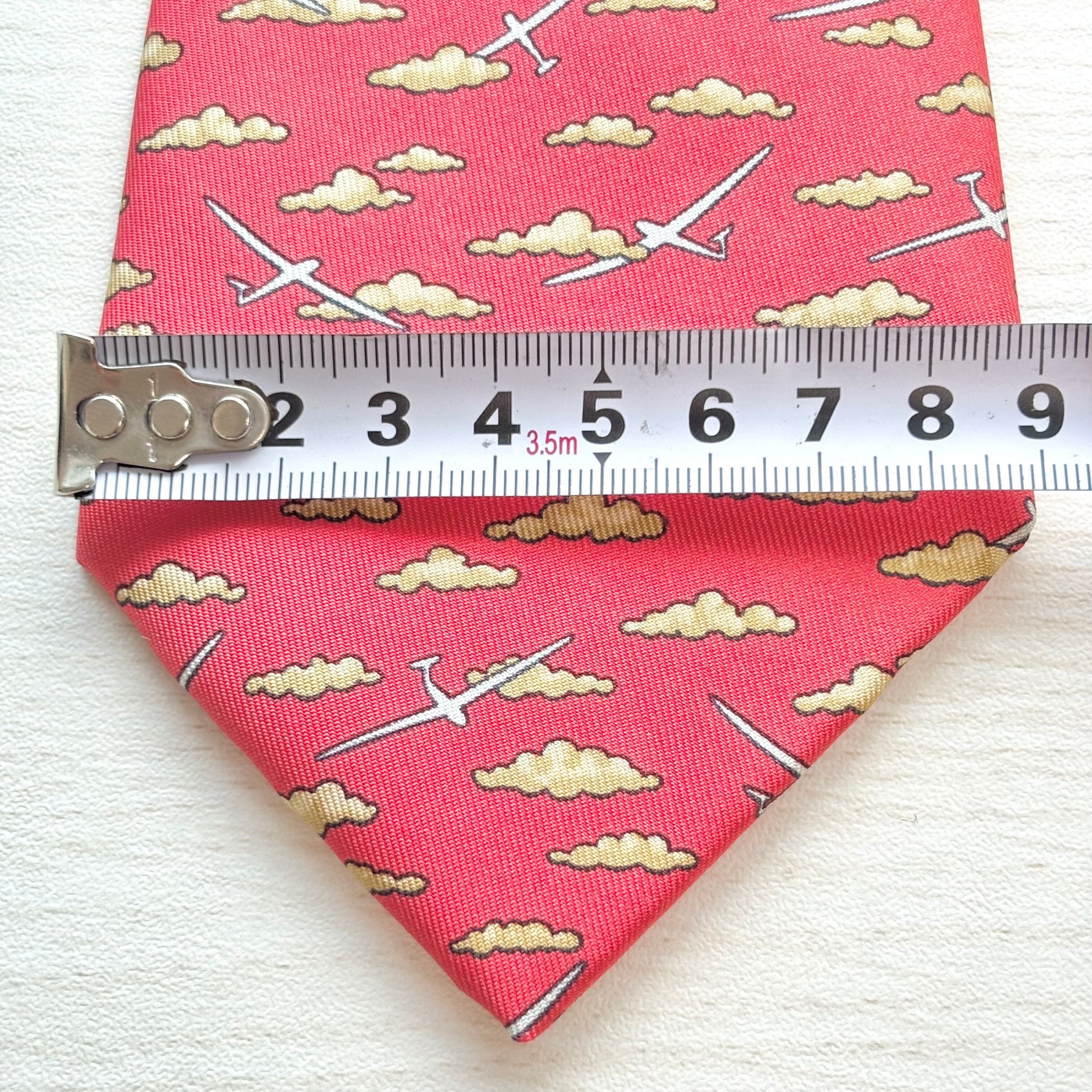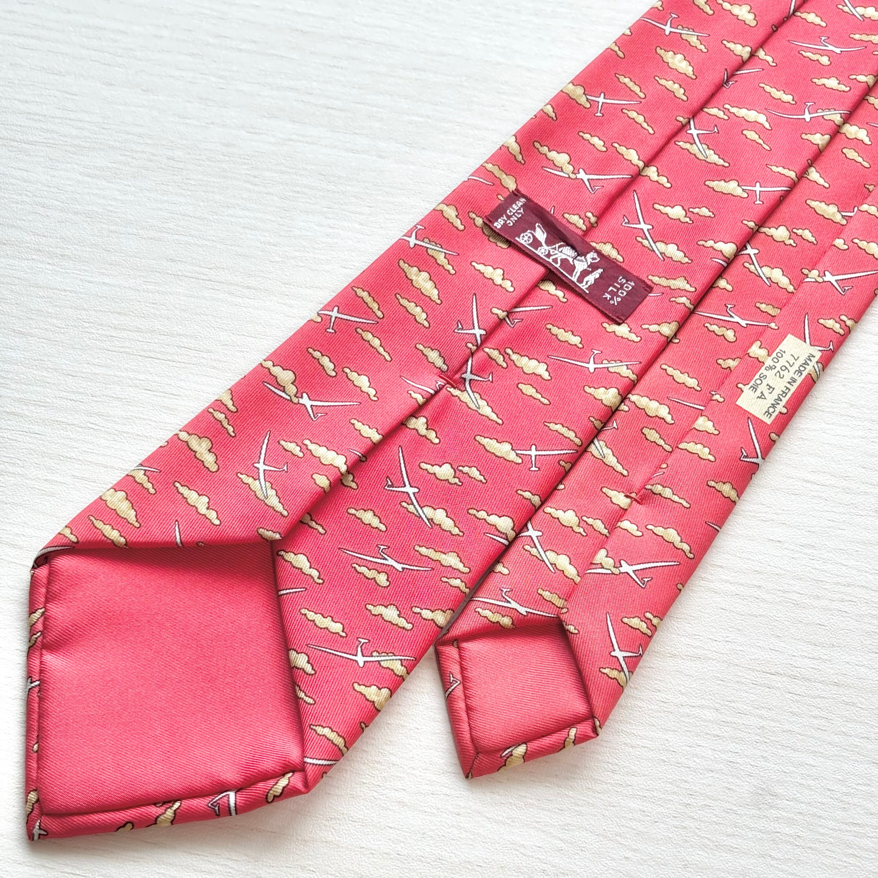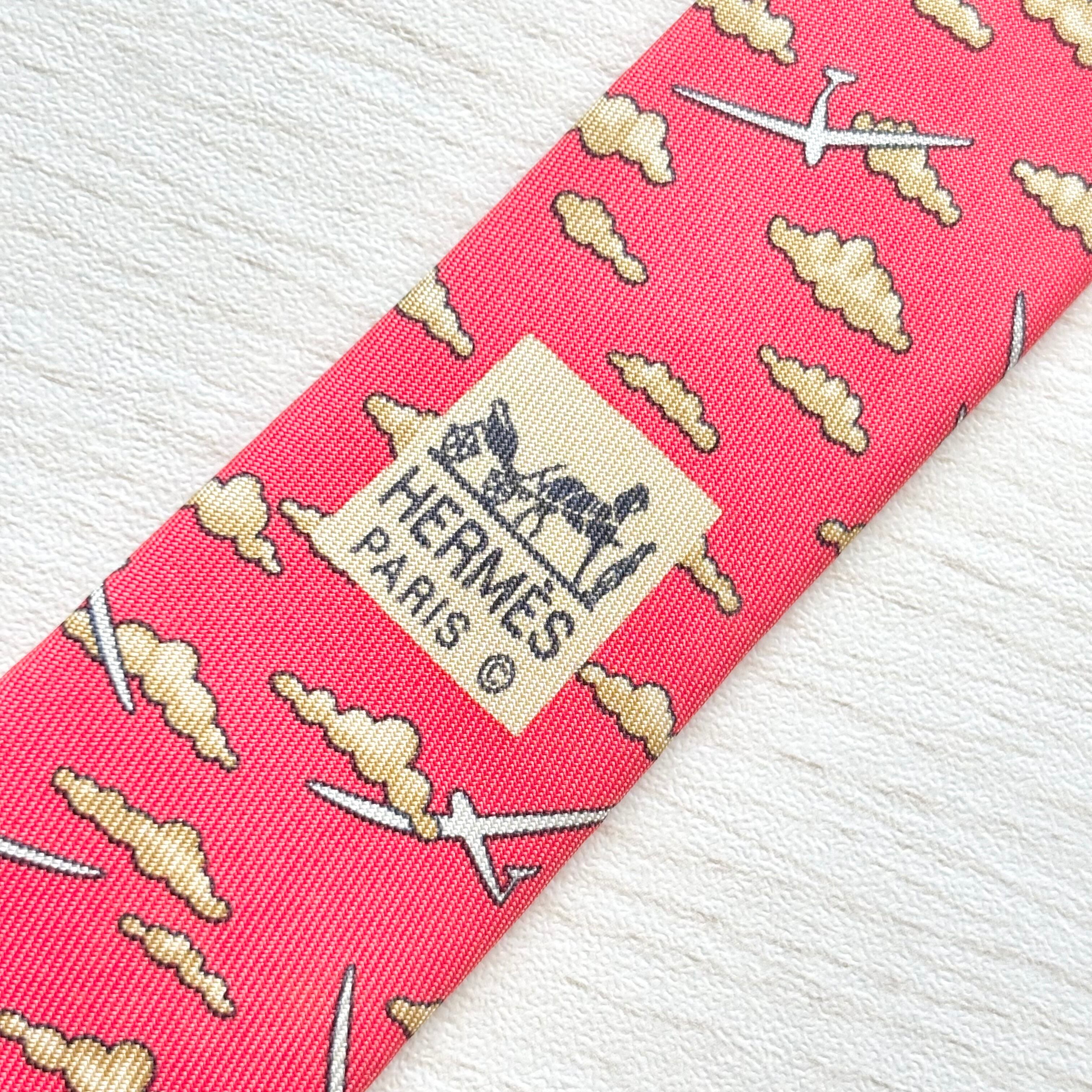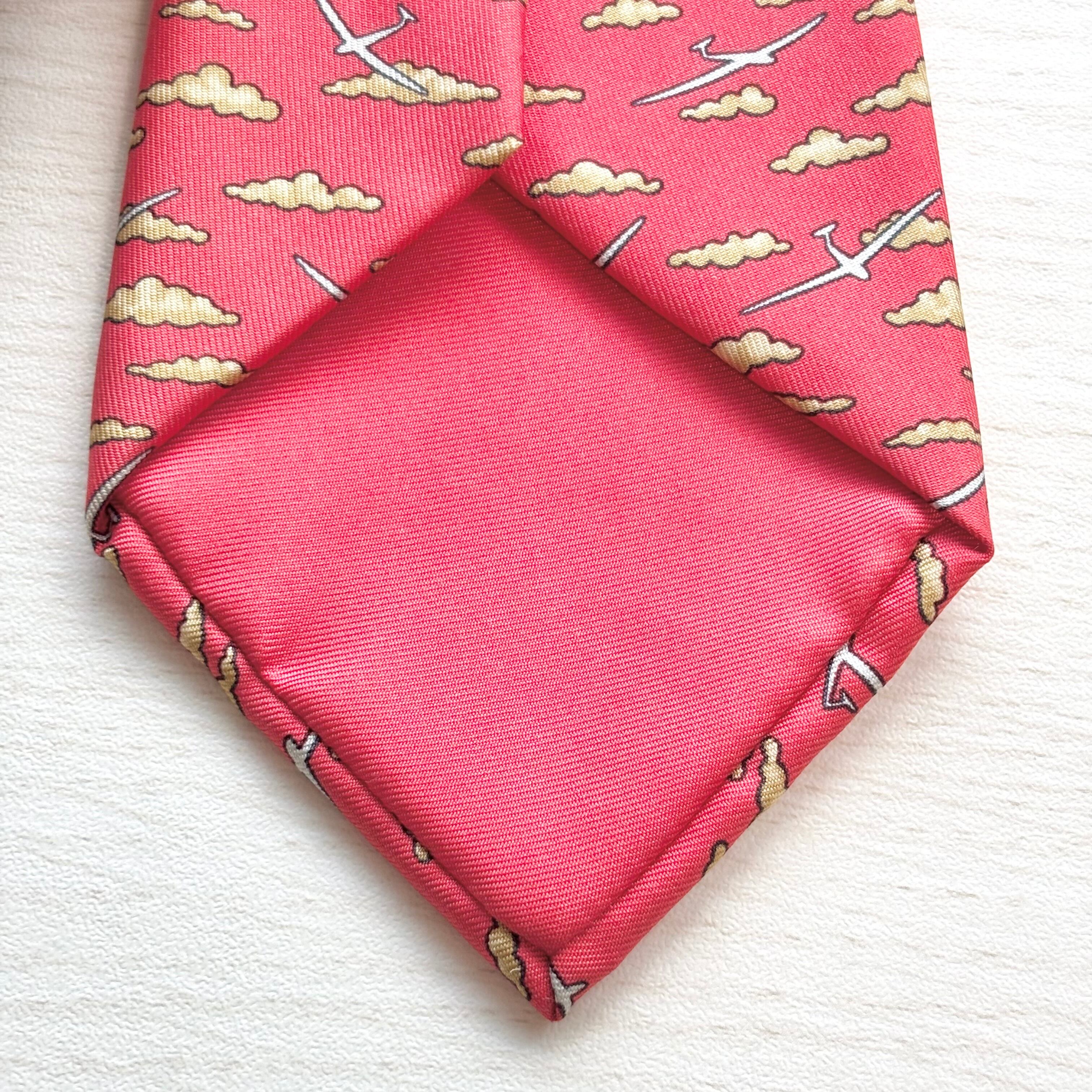 エルメスらしいユーモアと個性を感じさせる「雲と飛行機」柄のシルクネクタイです。