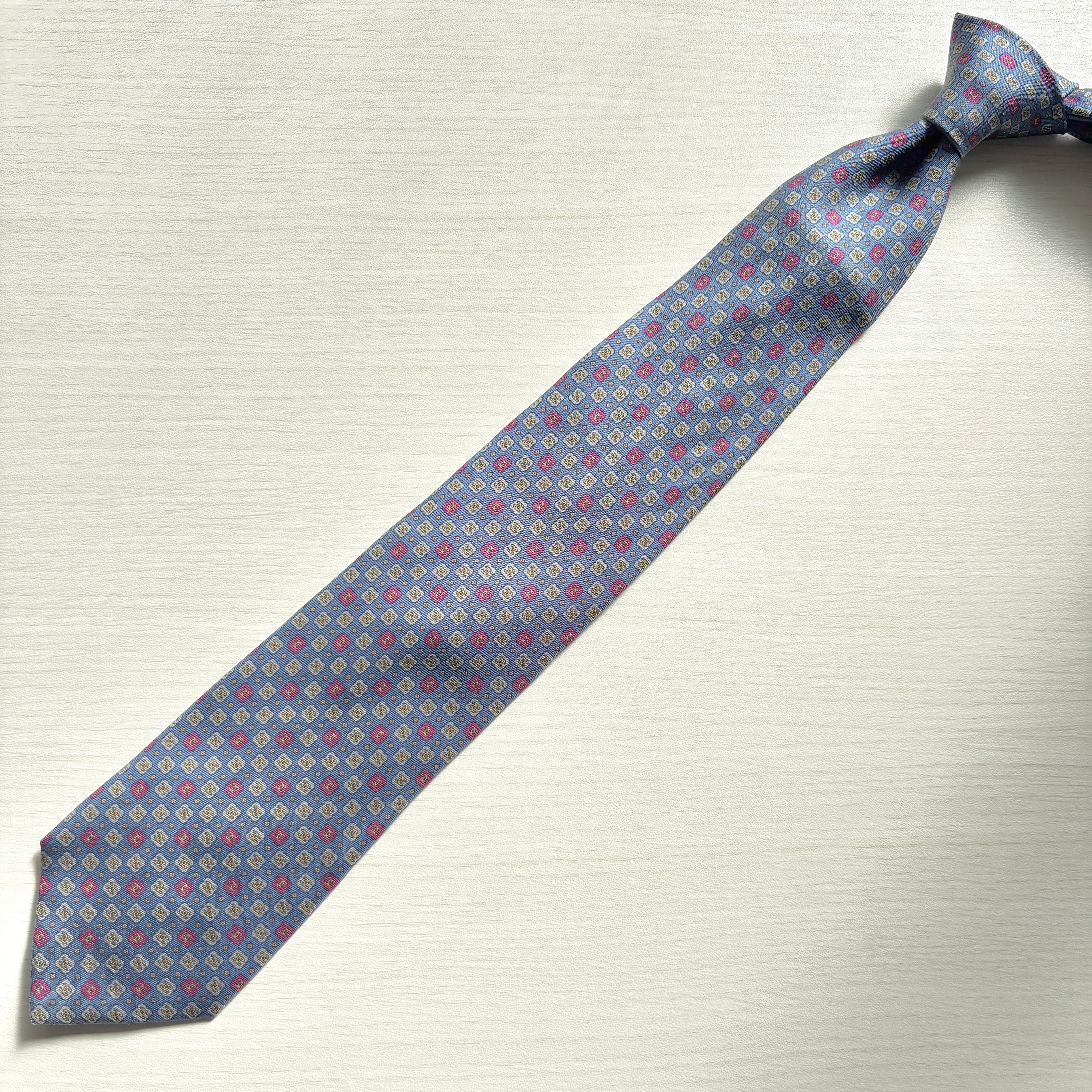 【used】CHANEL シャネルのネクタイは、ココマークをあしらった総柄デザインが特長のアイテムです。このグレーとピンクの色合いの調和が、ビジネスシーンや特別なイベントにおいて、あなたのセンスを際立たせる一品です。大剣幅8cmのこのネクタイは、高品質な素材が持つ滑らかな手触りと光沢感で、一段と上品な印象を与えます。