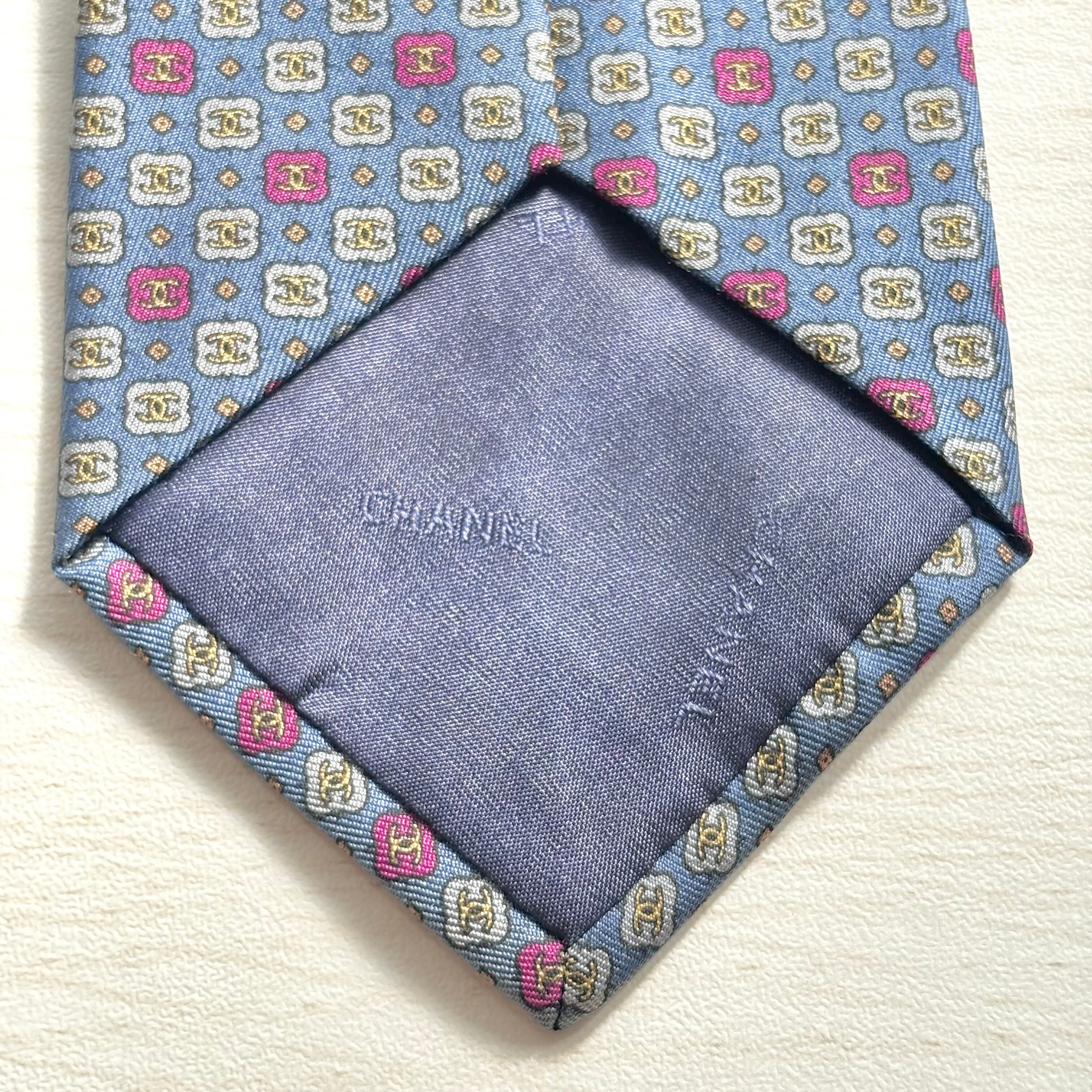【used】CHANEL シャネル ネクタイ ココマーク 総柄 グレー ピンク メンズ ハイブランド ブランドネクタイ