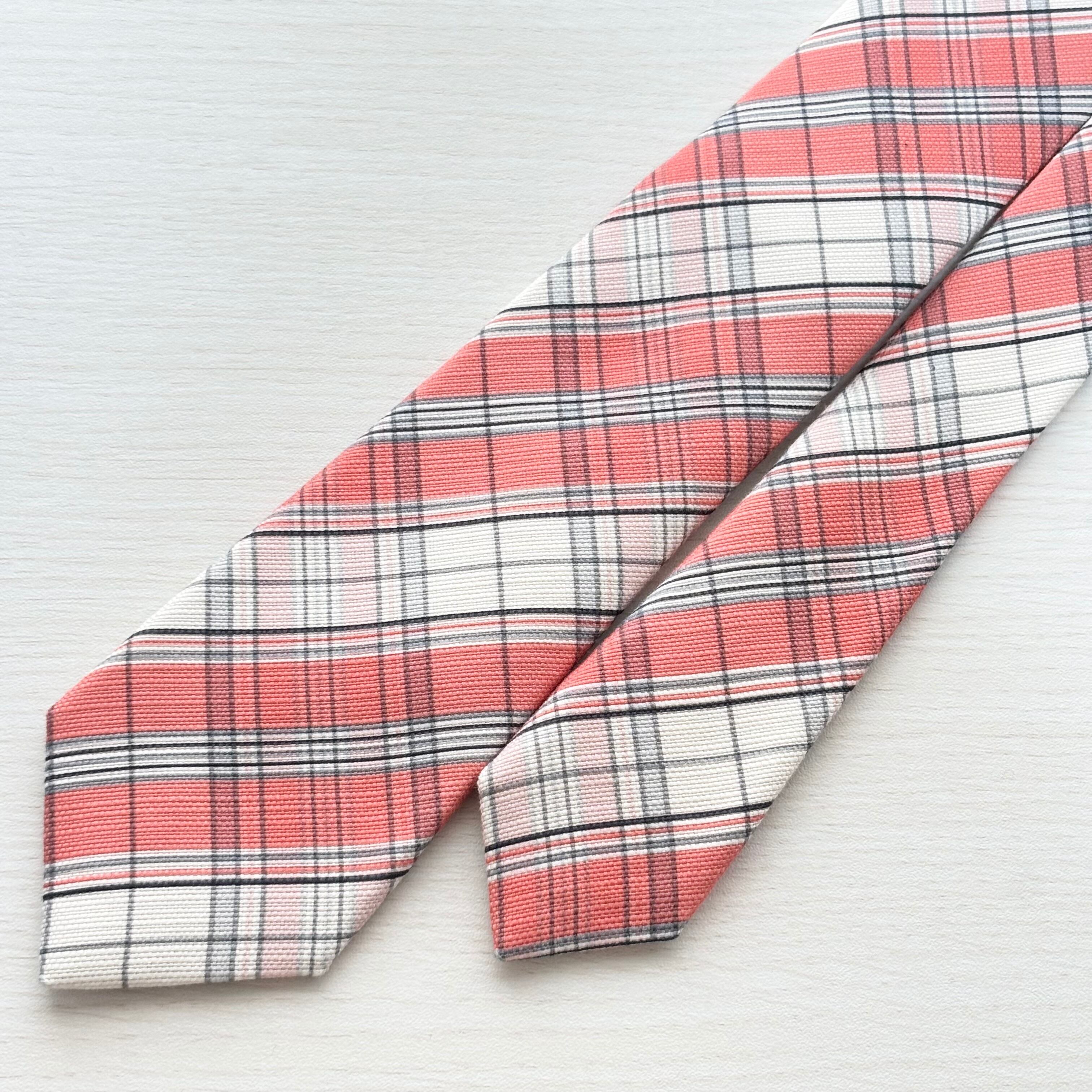 【used】美品 ISAIA イザイア オレンジ チェック コットン ネクタイ ハンドメイド