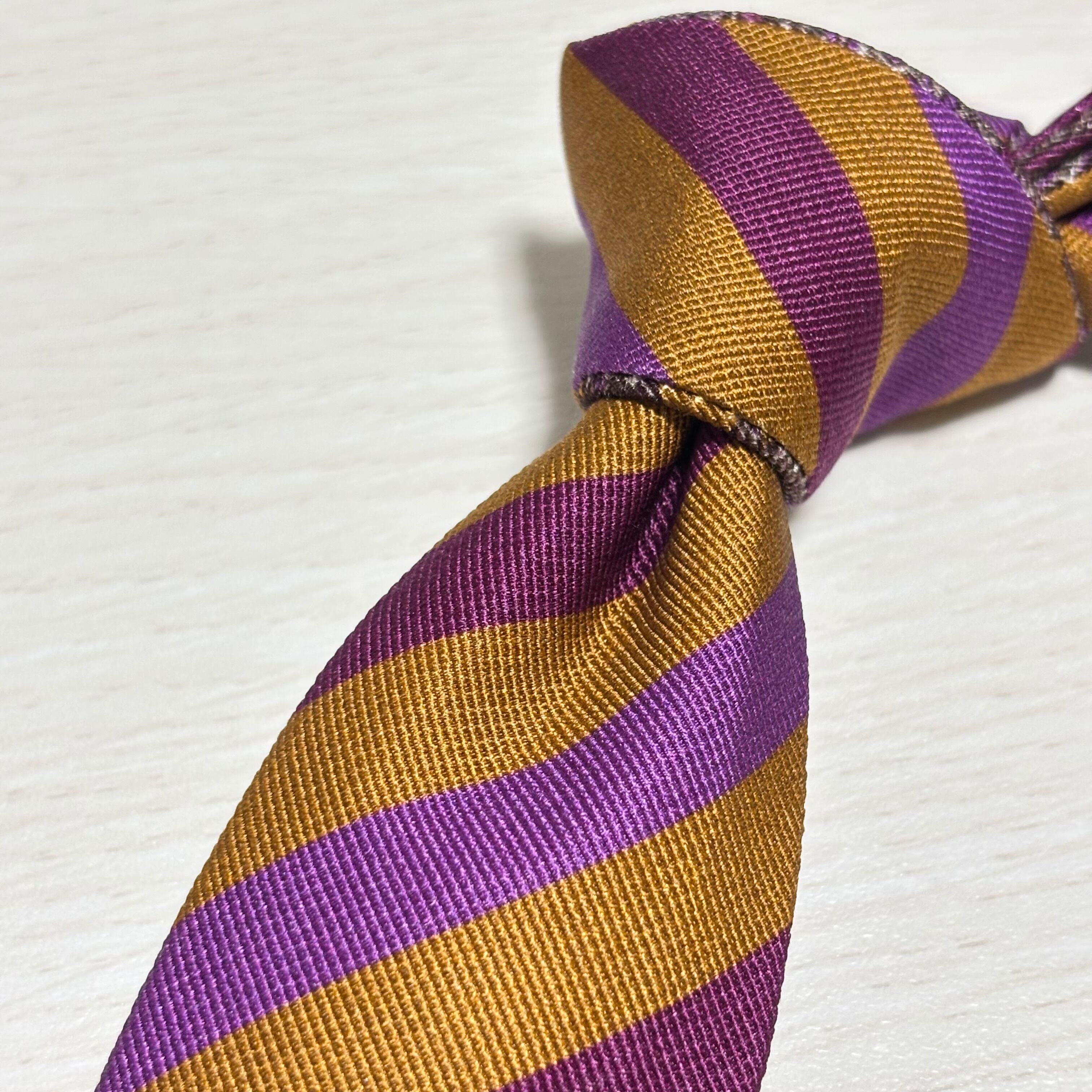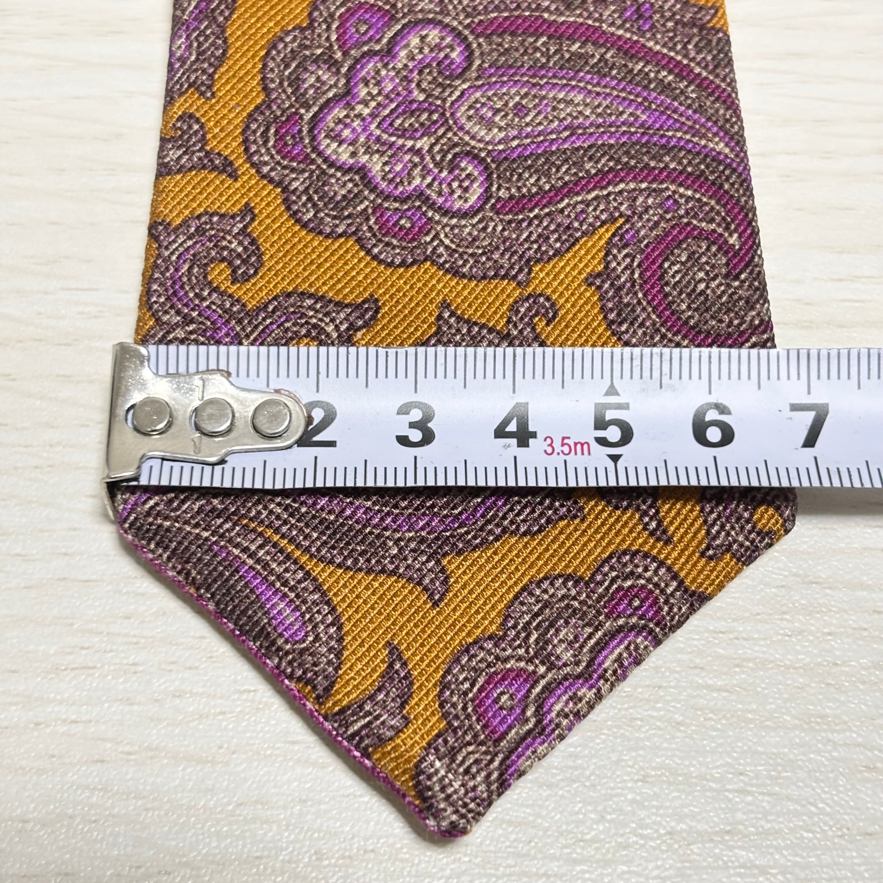 紫と辛子色のリバーシブルペイズリー柄ネクタイ。