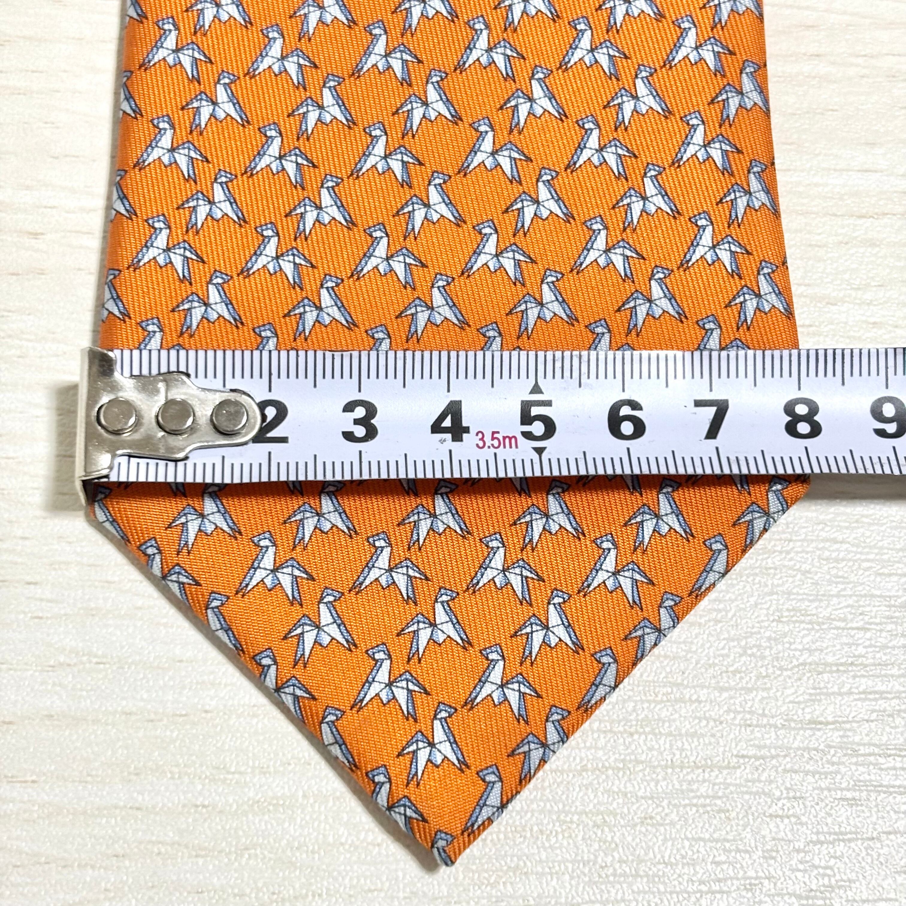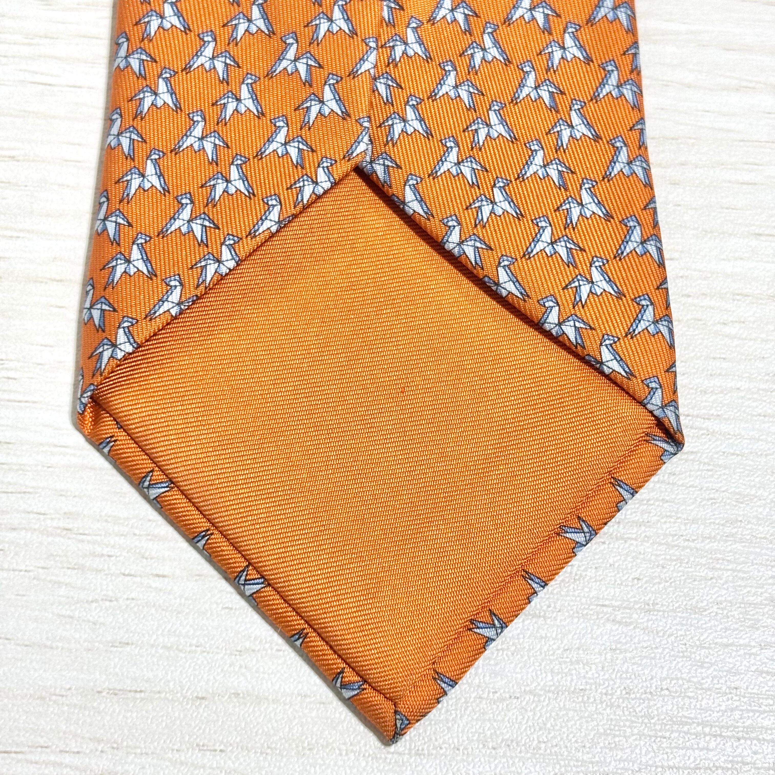 【used】HERMES エルメス オレンジ かわいい 遊び心 折り紙 馬 シルク ネクタイ