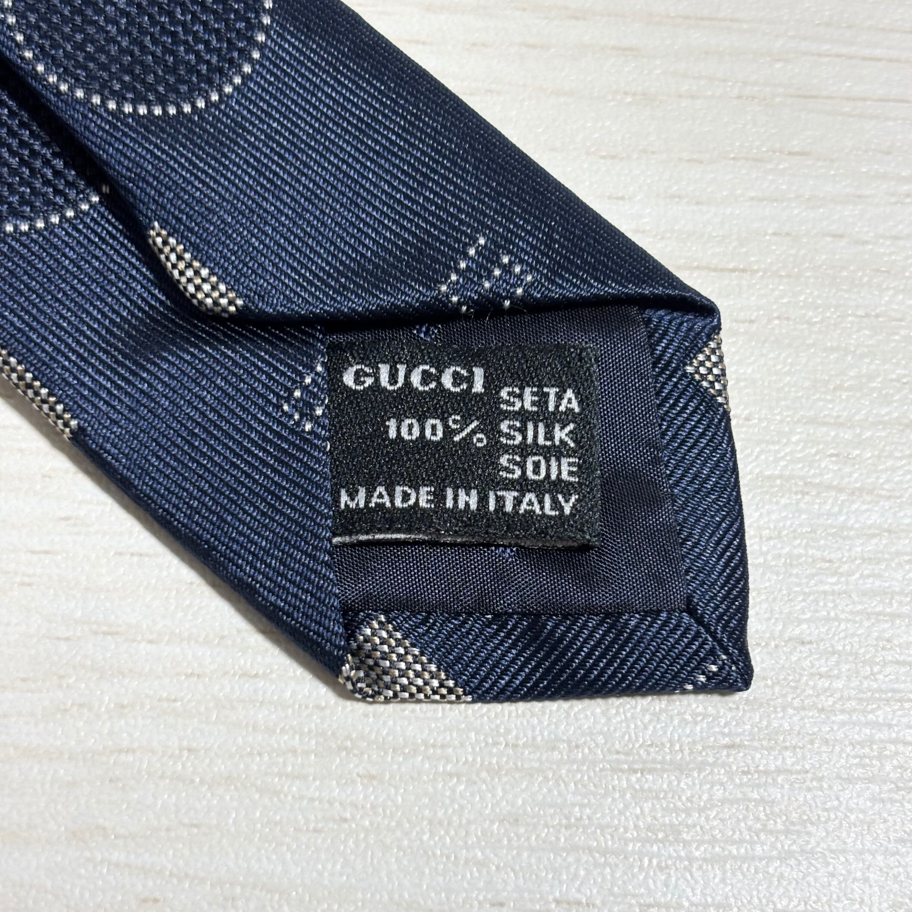【used】GUCCI グッチ ネイビー GG柄 ドット柄 ジャガード織り シルク ネクタイ